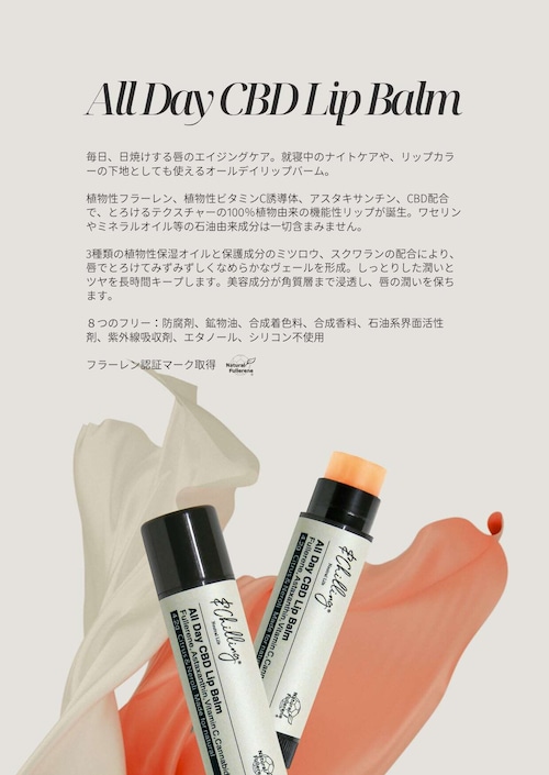 植物性フラーレン、植物性ビタミンC誘導体、アスタキサンチン配合で、とろけるテクスチャーの100%天然由来の機能性リップが誕生。ワセリンやミネラルオイル等の石油由来成分は一切含まみません。