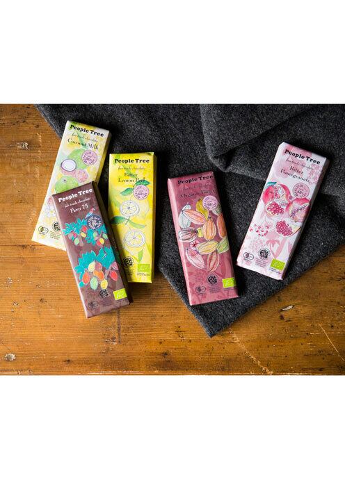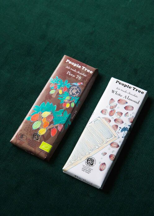 ピープルツリーのチョコは、有機栽培に力を入れている生産者団体が育てたカカオ豆を使用しています。心を込めてつくった農作物を、ふさわしい値段で買い取ることによって日々の生活を支え、つくり手の健康や環境を守り、教育支援などのサポートをしています。